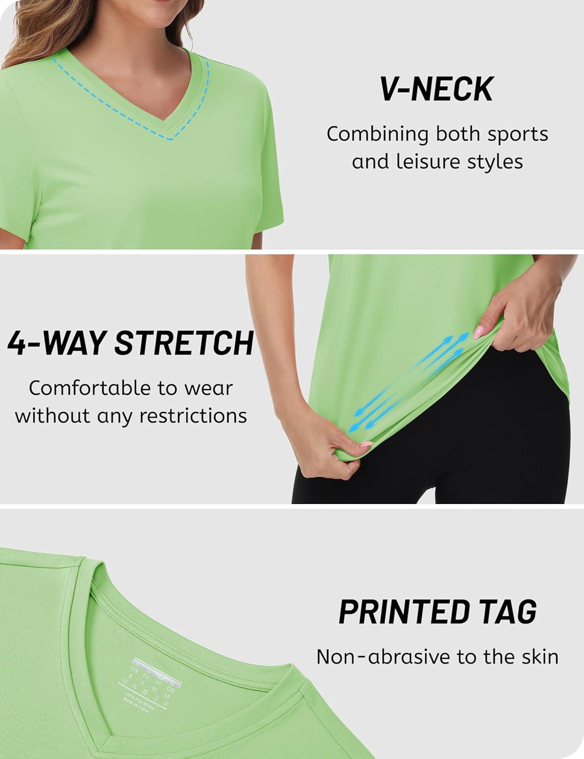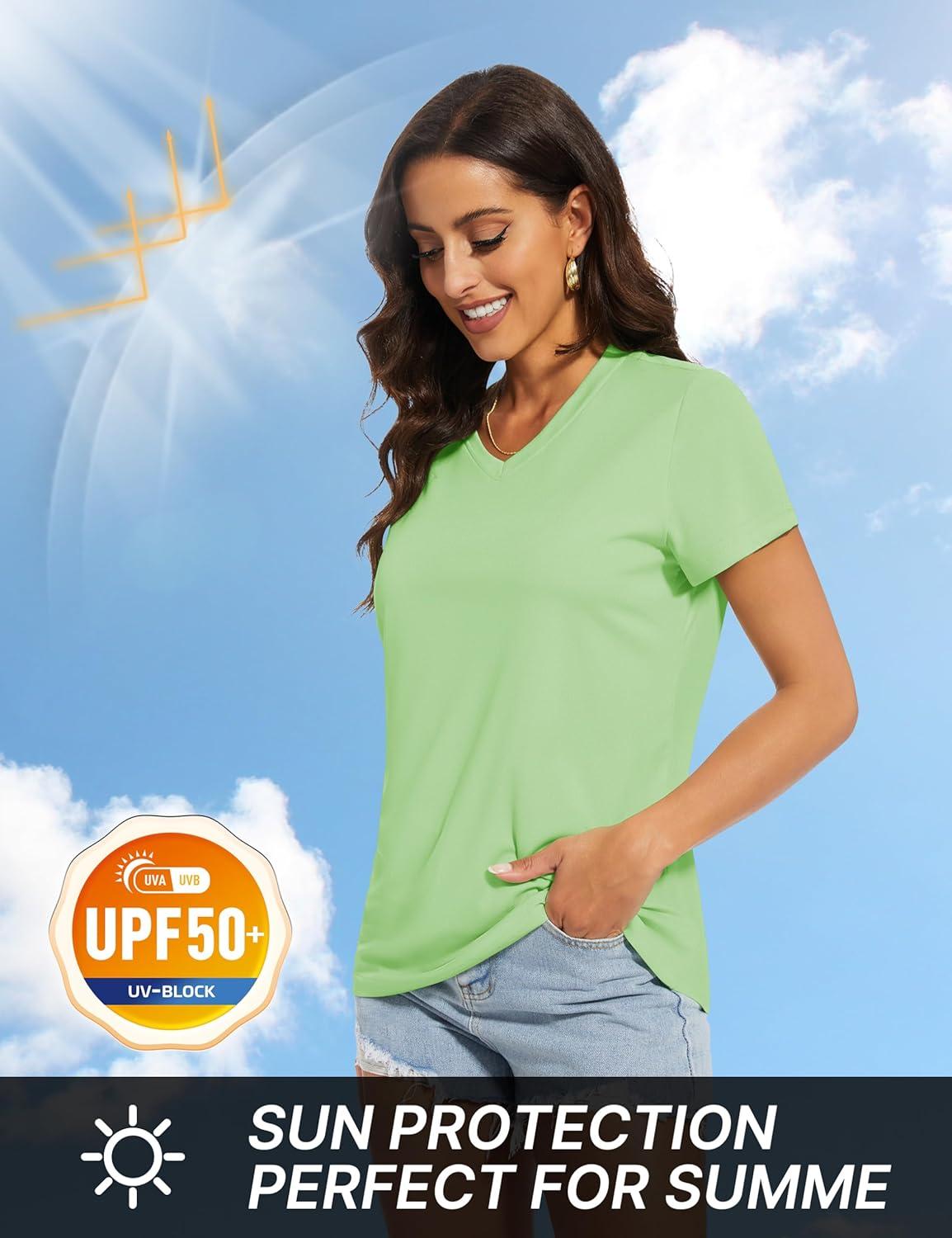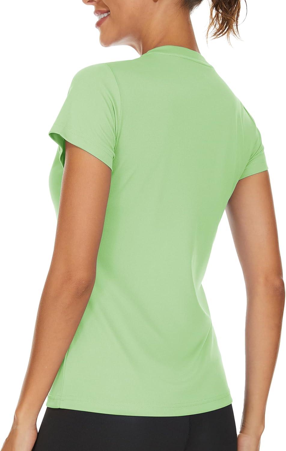 TACVASEN Workout Tops for Women UPF 50+ Sun Protection V-Neck T Shirts Short Sleeve Quick Dry Athletic Running Shirts(Light Green)