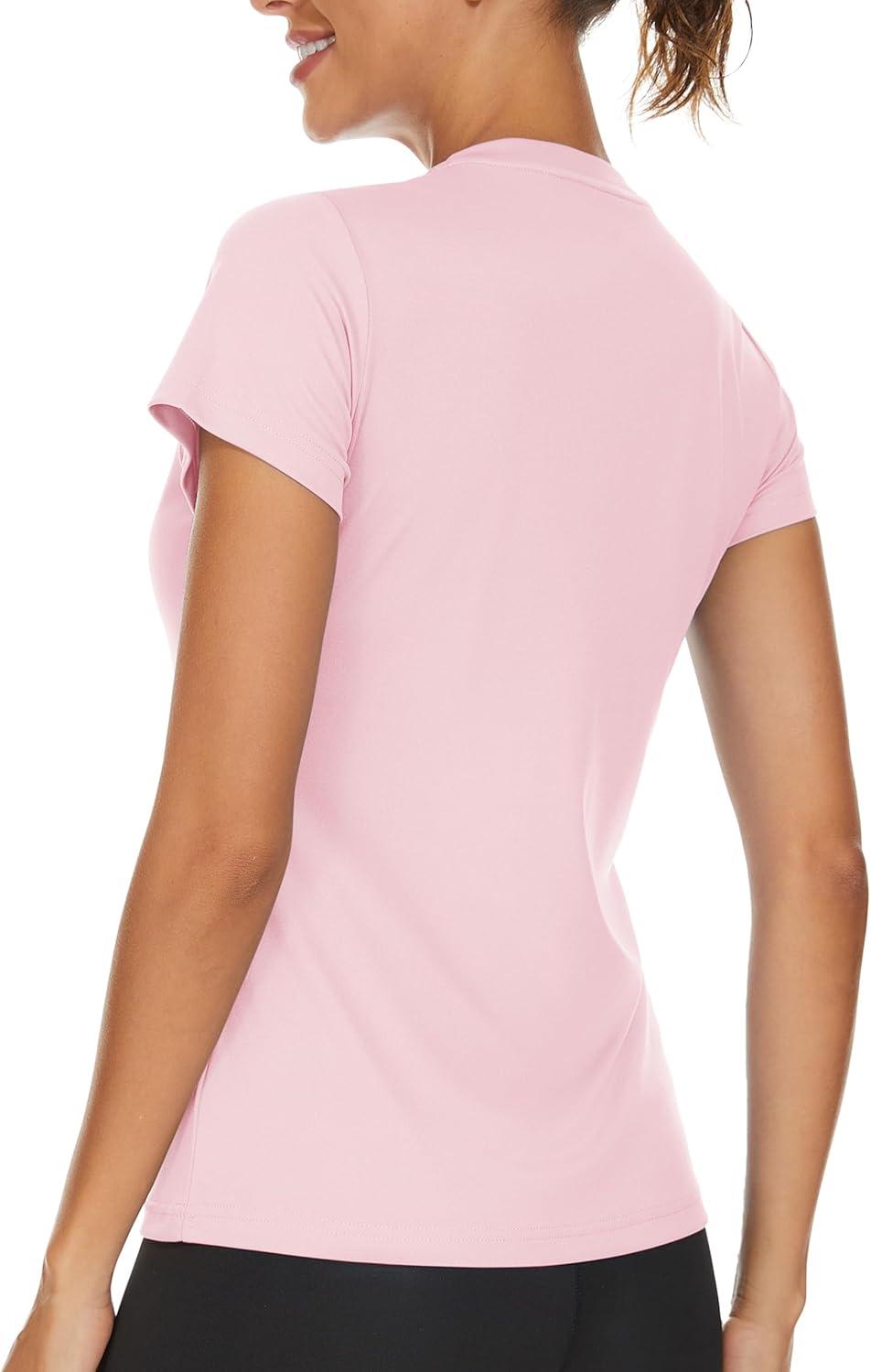 TACVASEN Workout Tops for Women UPF 50+ Sun Protection V-Neck T Shirts Short Sleeve Quick Dry Athletic Running Shirts(Light Pink)
