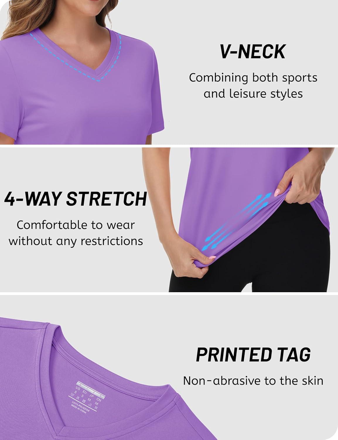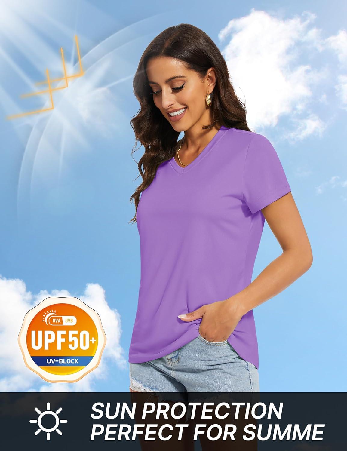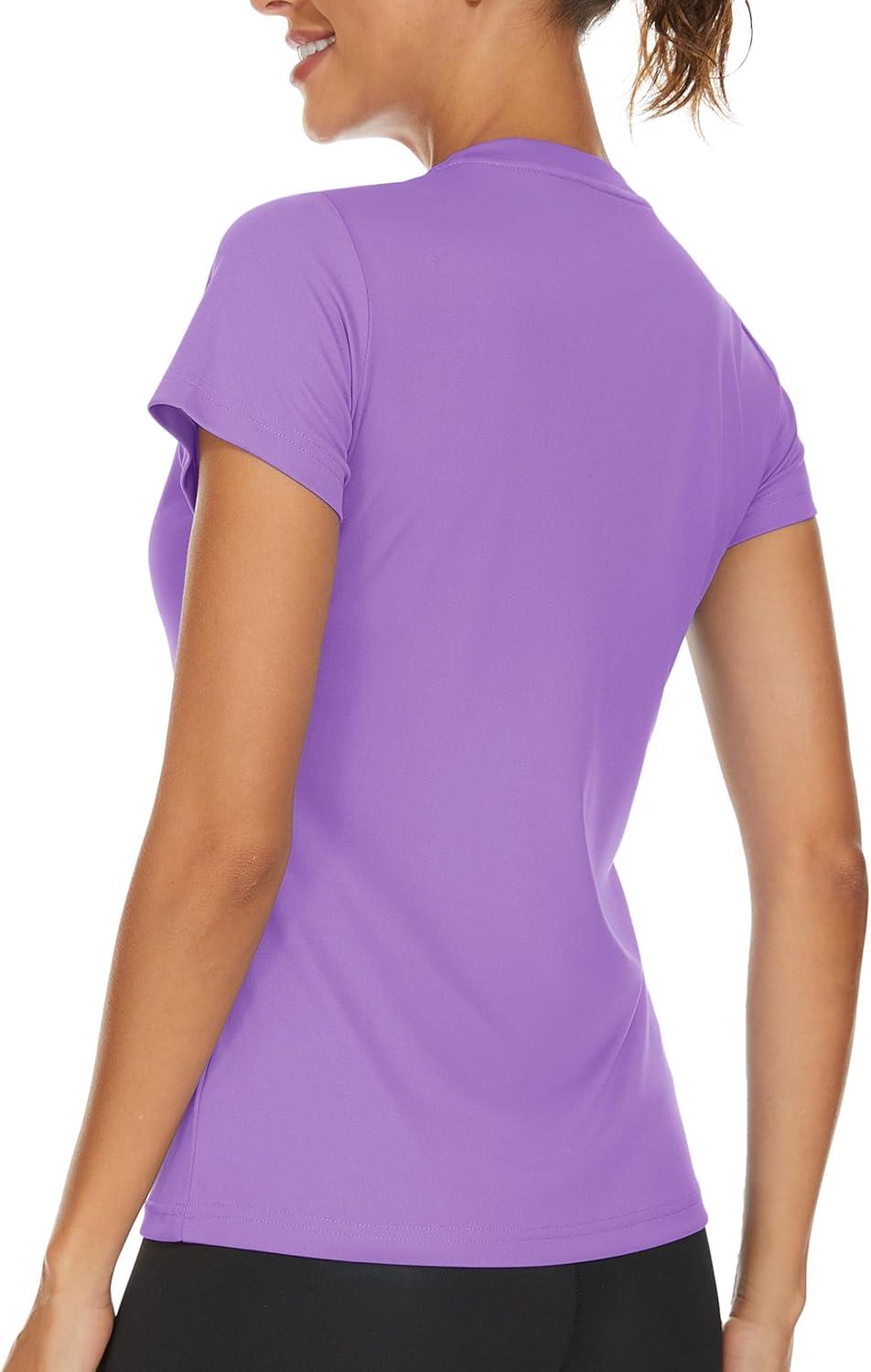 TACVASEN Workout Tops for Women UPF 50+ Sun Protection V-Neck T Shirts Short Sleeve Quick Dry Athletic Running Shirts(Light Purple)