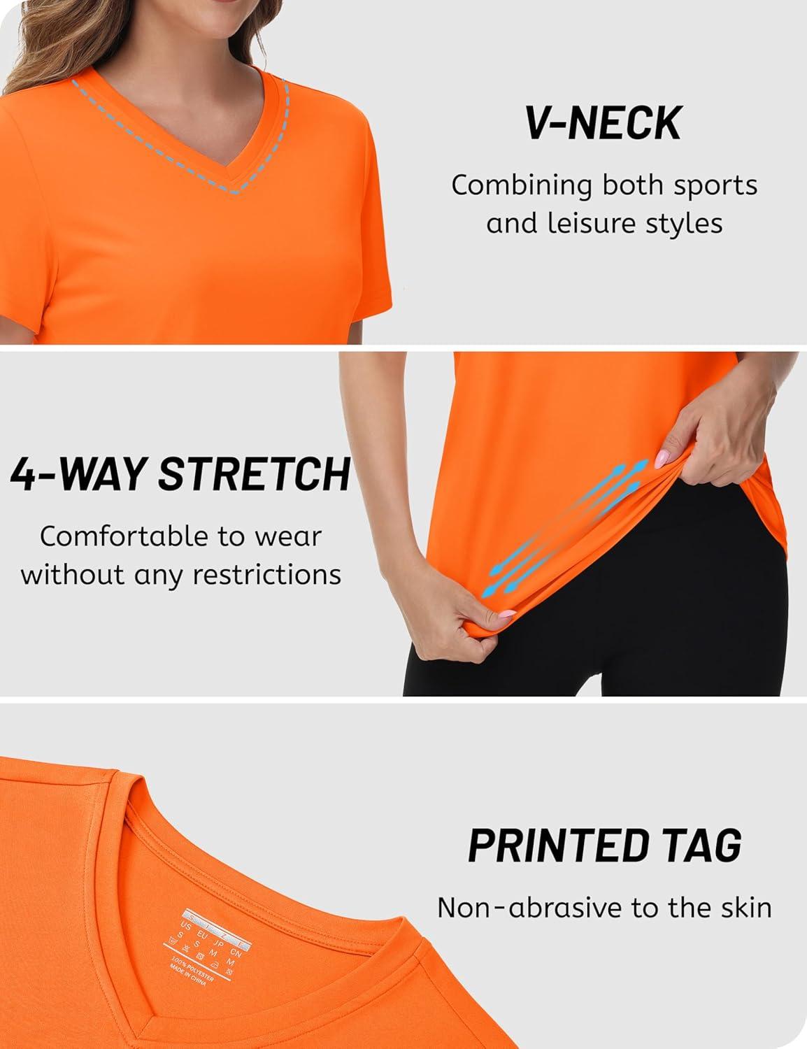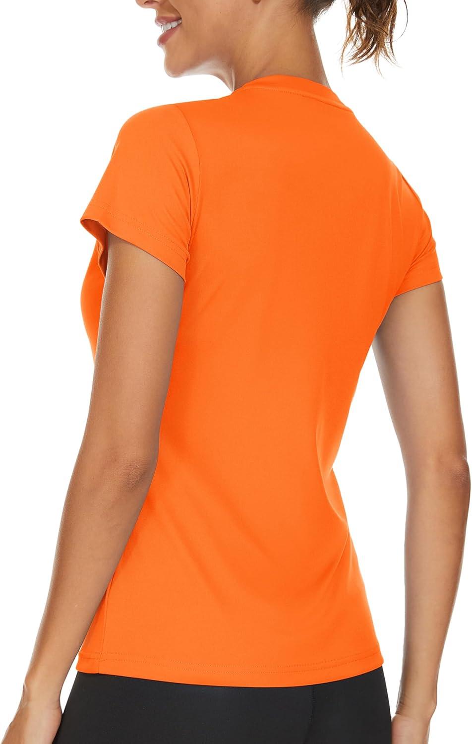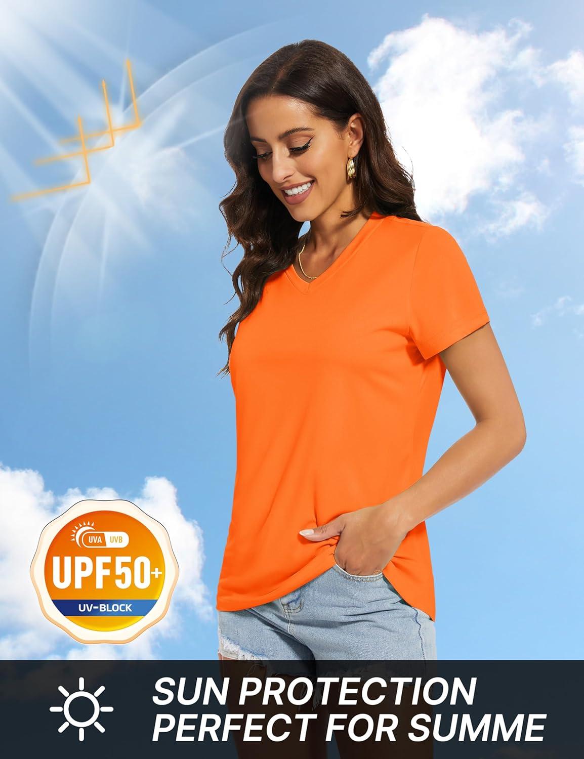 TACVASEN Workout Tops for Women UPF 50+ Sun Protection V-Neck T Shirts Short Sleeve Quick Dry Athletic Running Shirts(Orange)