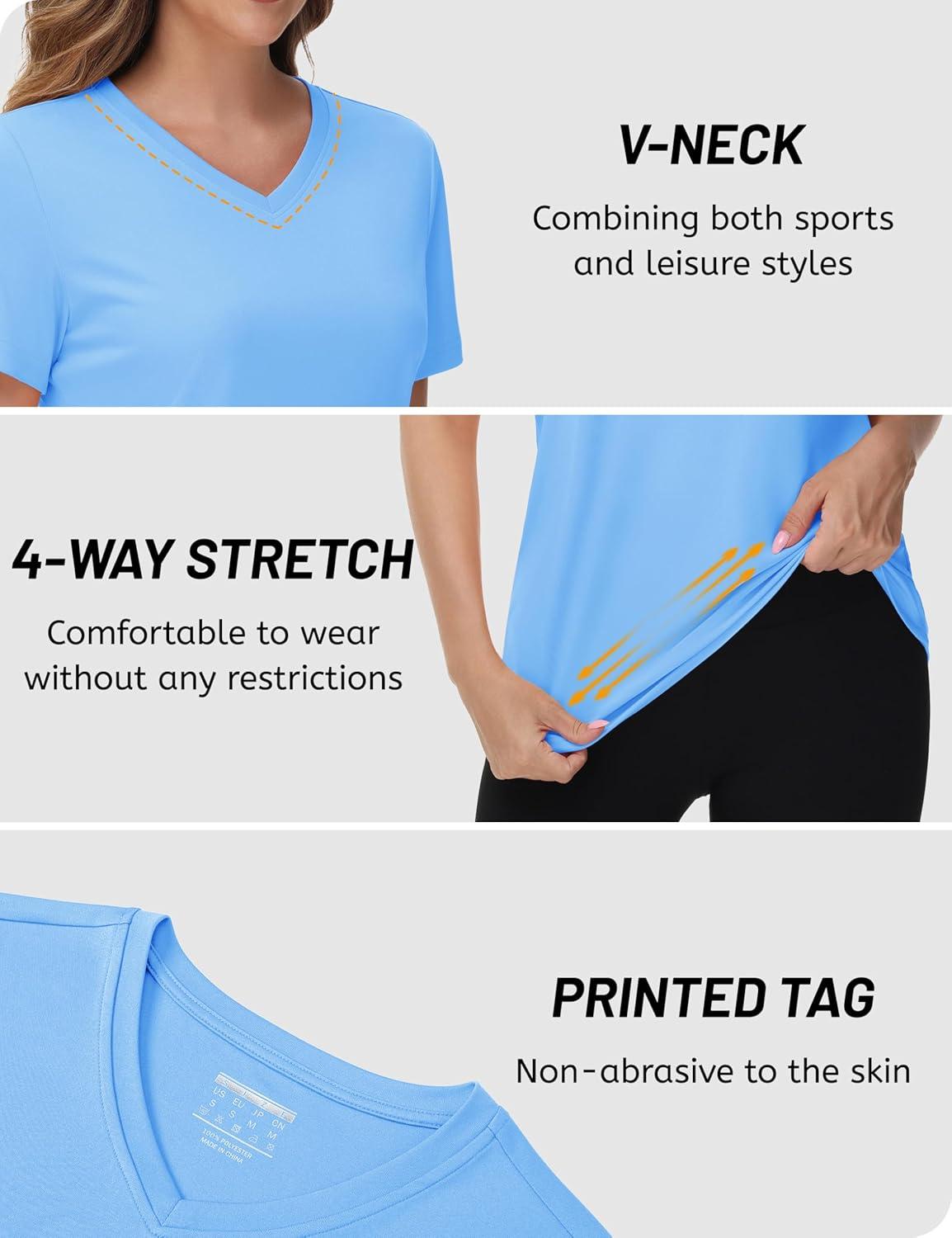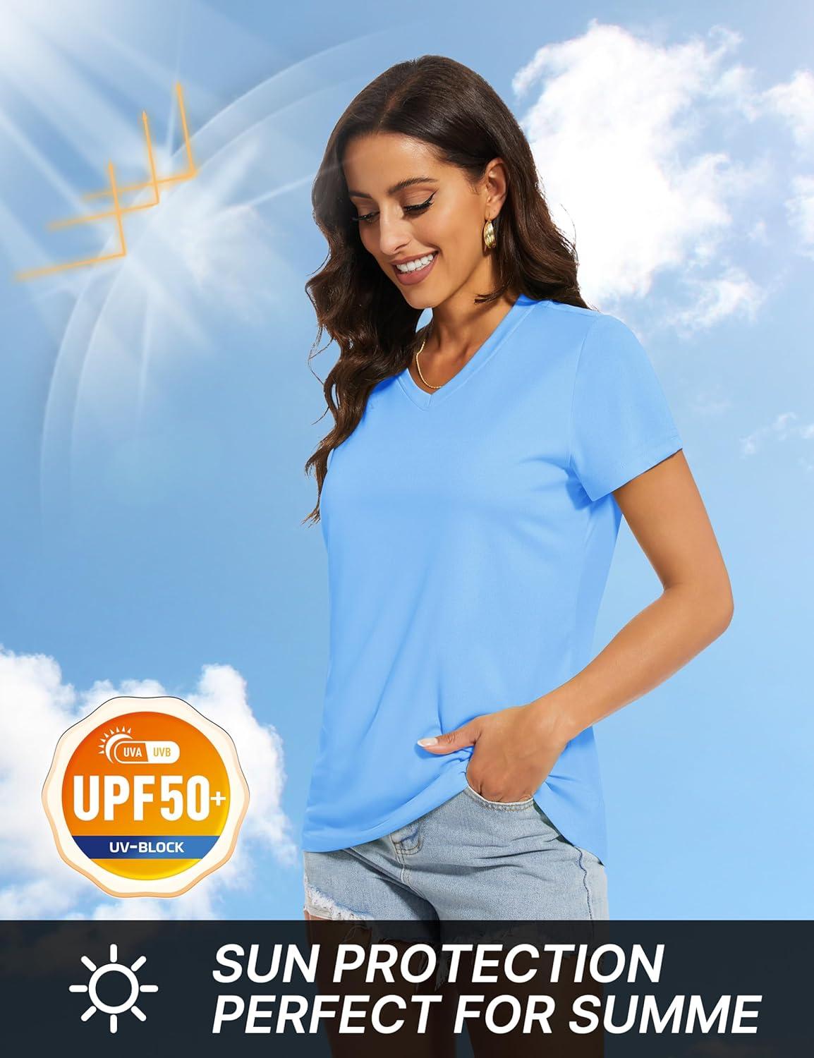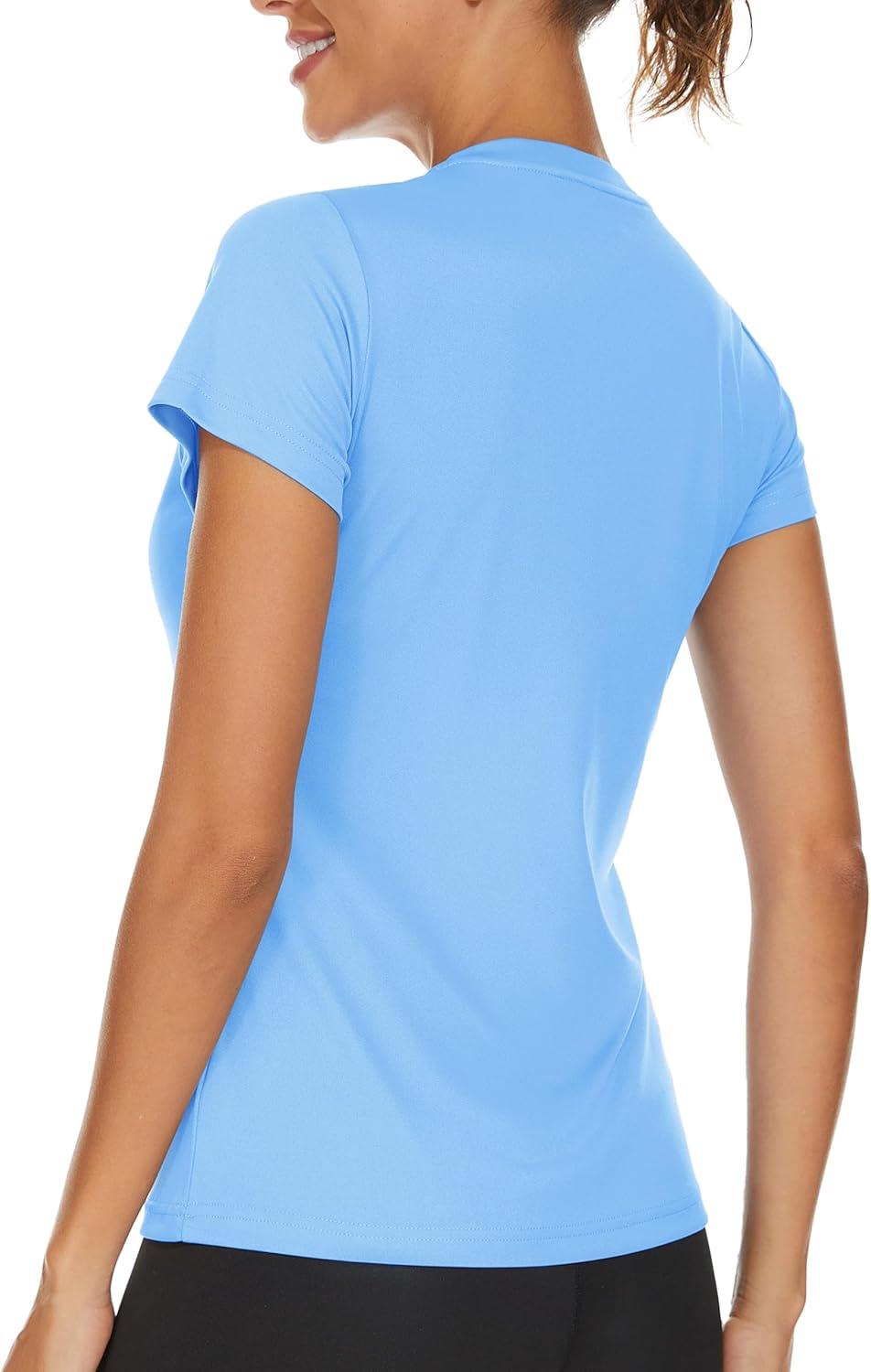 TACVASEN Workout Tops for Women UPF 50+ Sun Protection V-Neck T Shirts Short Sleeve Quick Dry Athletic Running Shirts(Waterfall Blue)