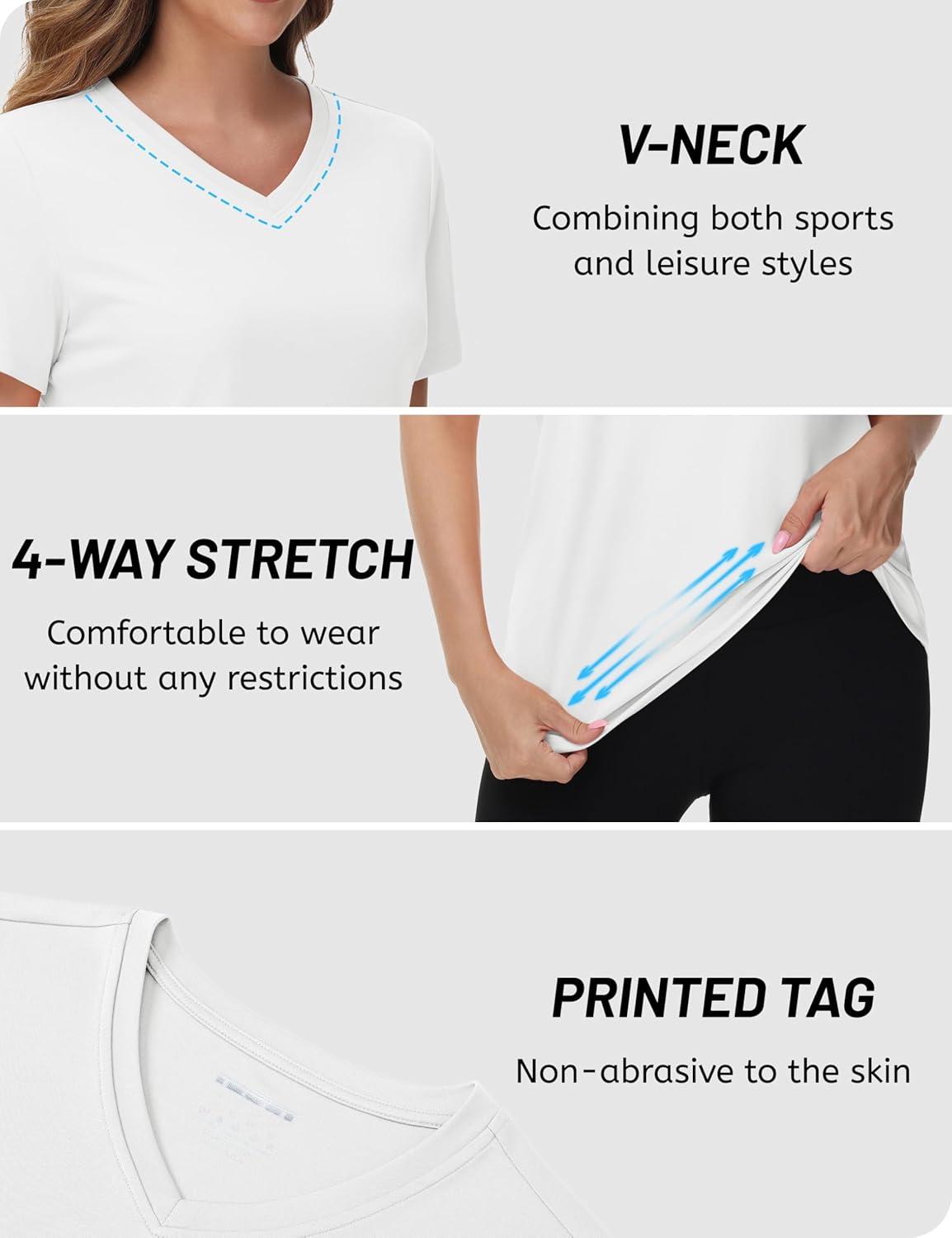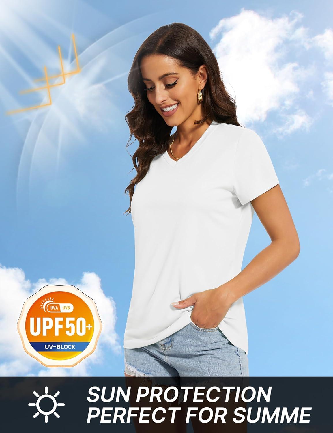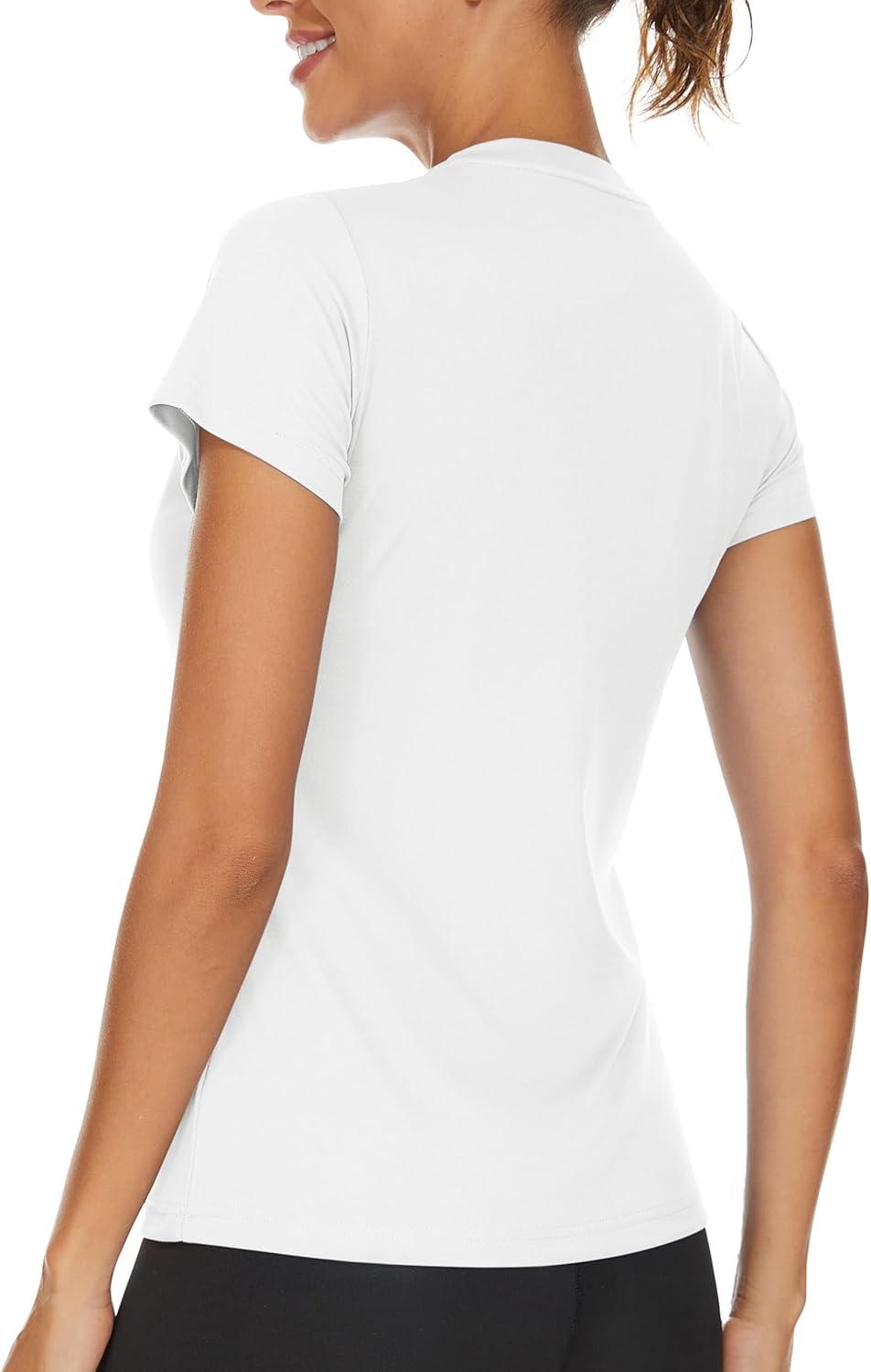 TACVASEN Workout Tops for Women UPF 50+ Sun Protection V-Neck T Shirts Short Sleeve Quick Dry Athletic Running Shirts(White)